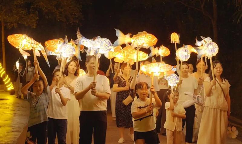 巴伐利亚庄园以 “沉浸式互动” 为亮点,为市民、游客带来别样中秋体验。活动现场开展鱼灯巡游,鱼灯在夜色中流光溢彩,演员们身着特色服饰演绎民俗风情,喷火表演引得现场观众阵阵惊呼。篝火狂欢夜和璀璨火花大会,游客们围着篝火载歌载舞,火花大会上绚烂的火花在夜空绽放,游客纷纷举起手机记录美好瞬间。庄园内随处可见中秋主题互动打卡点,玉兔、月亮、灯笼等装饰元素营造出浓厚节日氛围,不少家庭在此拍摄留念。